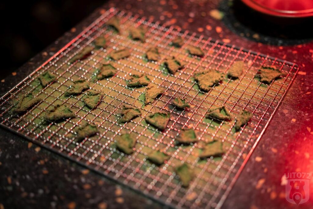 Kojiwortel: in het onderzoek naar de botanische keuken test Neder met vegetarische charcuterie. Deze wortel is behandeld als een droge worst: gepekeld, gefermenteerd, gegaard en gerookt. Vervolgens is er een witschimmel op gegroeid en heeft de wortel een week gerijpt met een kaasachtige smaak en intensiteit als gevolg.