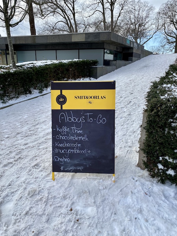 Ben je van plan om een wandeling te maken door het park, langs de Molen van Piet? Stop dan even bij Abby’s, voor een lekker bekertje glühwein en een kaas- of saucijzenbroodje. Daar knap je wel van op bij deze temperaturen. Liever geen alcohol, dan is er ook de mogelijkheid om koffie, thee of warme chocomelk te bestellen voor tijdens je winterwandeling.