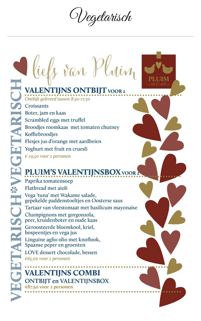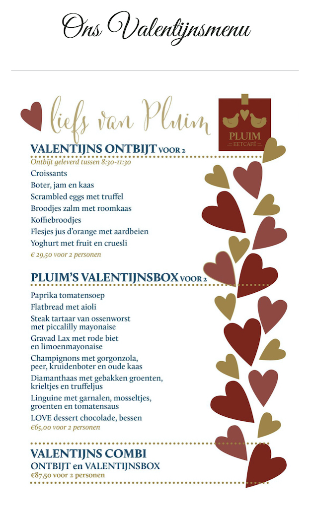 Opties: Valentijnsontbijt, Valentijnsbox of Valentijns combi (ontbijt + diner)