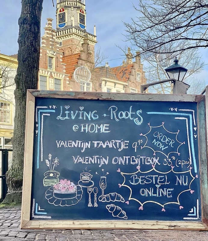 Dit schattige zaakje zit nu al een tijdje aan de Mient in Alkmaar. Mocht je nog niet bekend zijn met Living Roots, dan is het zeker de moeite waard om even binnen te gluren. Helaas kun je er nu alleen niet heen om ter plekke te genieten van een heerlijke lunch, of om te snuffelen tussen alle leuke spulletjes die zij verkopen. Wat je wel kunt doen is op 13 en 14 februari genieten van een speciaal Valentijn chocoladetaartje of een Valentijnsontbijt. Zonder twijfel, met zorg en liefde klaargemaakt.