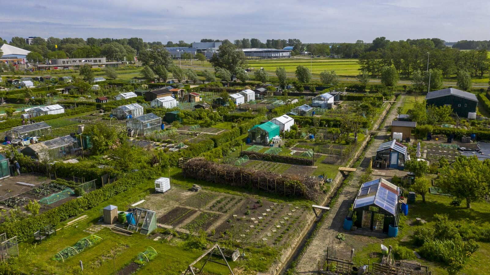 Weer eentje in het Hoefplan, en wat voor eentje! De Hoefmolen is een actieve volkstuinvereniging en een flinke: er zijn bijna 180 tuinen die variëren in grootte tussen 50 en 400 m2. Veel tuinen hebben een kas of een blokhut. Check vooral de website om te lezen over de uitgebreide historie van ATV De Hoefmolen. Ook kun je daar – een hoogtepunt – liedjes over volkstuinen beluisteren.