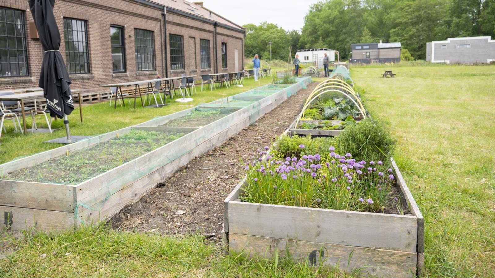 Picknicktafel in de moestuin