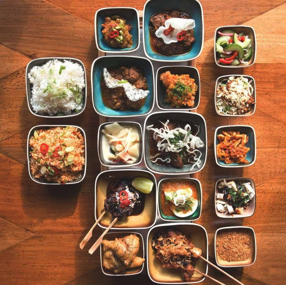 De box is zo overzichtelijk mogelijk gemaakt. ‘De blauwe bakjes met koude gerechten en rode zakjes voor de warme gerechten . De rijsttafel wordt geserveerd inclusief (video)uitleg, serveersuggesties én muzieklijstje om je in de sfeer te brengen. Om de Indonesia beleving compleet te maken kan je er Spekkoek en een paar flesje Bintang (of een lekker flesje wijn) bij besteld worden. Liever iets pittiger? Ook de home made sambal is extra bij te bestellen.